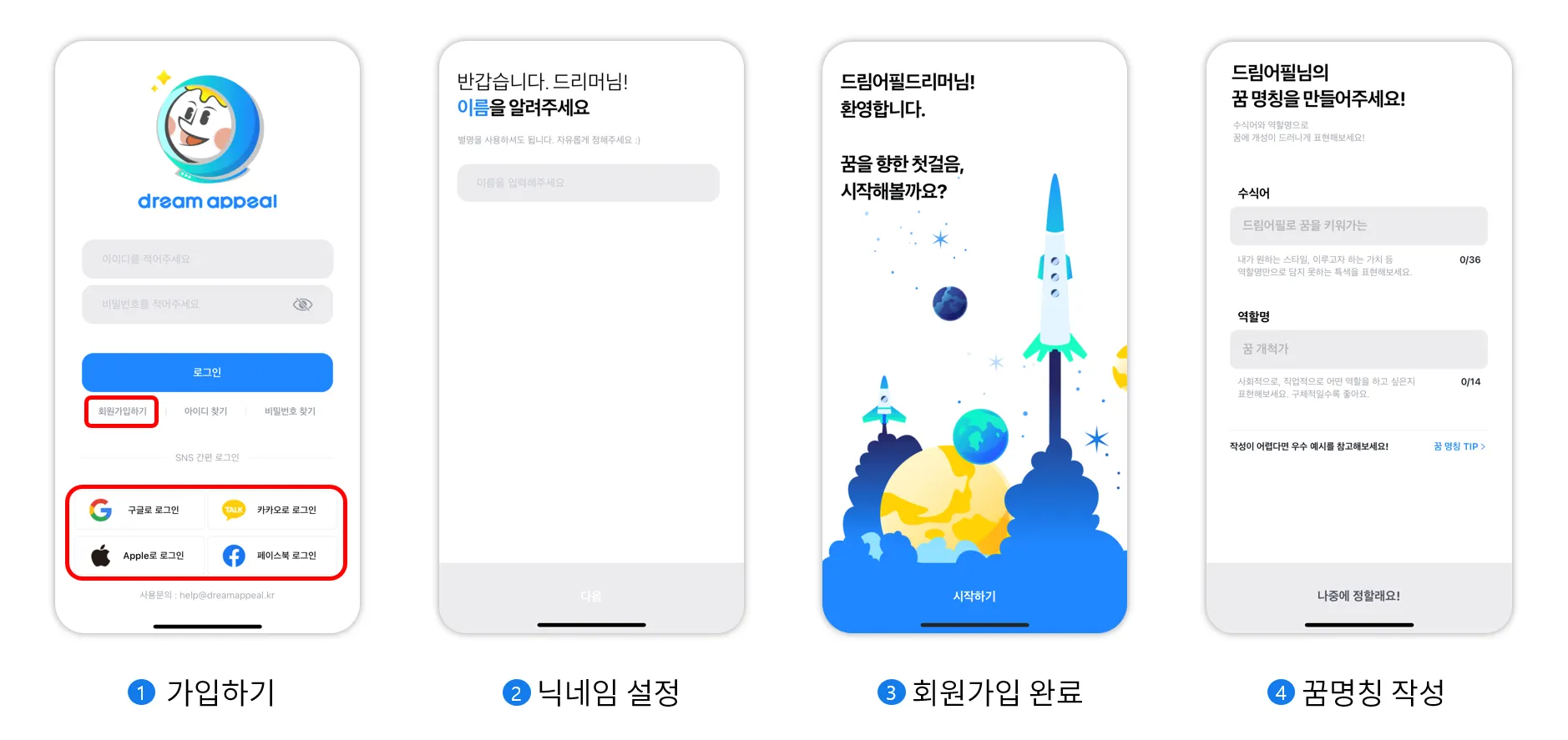 드림어필의 다양한 지원과 선물을 받기 위해서는 이메일 등록이 필요합니다.