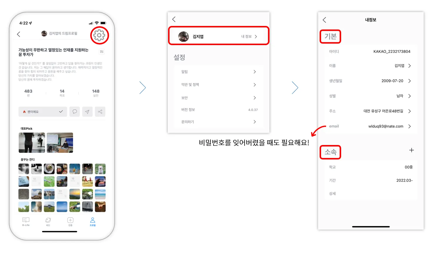 비밀번호를 잊어버렸을때도 이메일을 통해 찾을 수 있습니다.