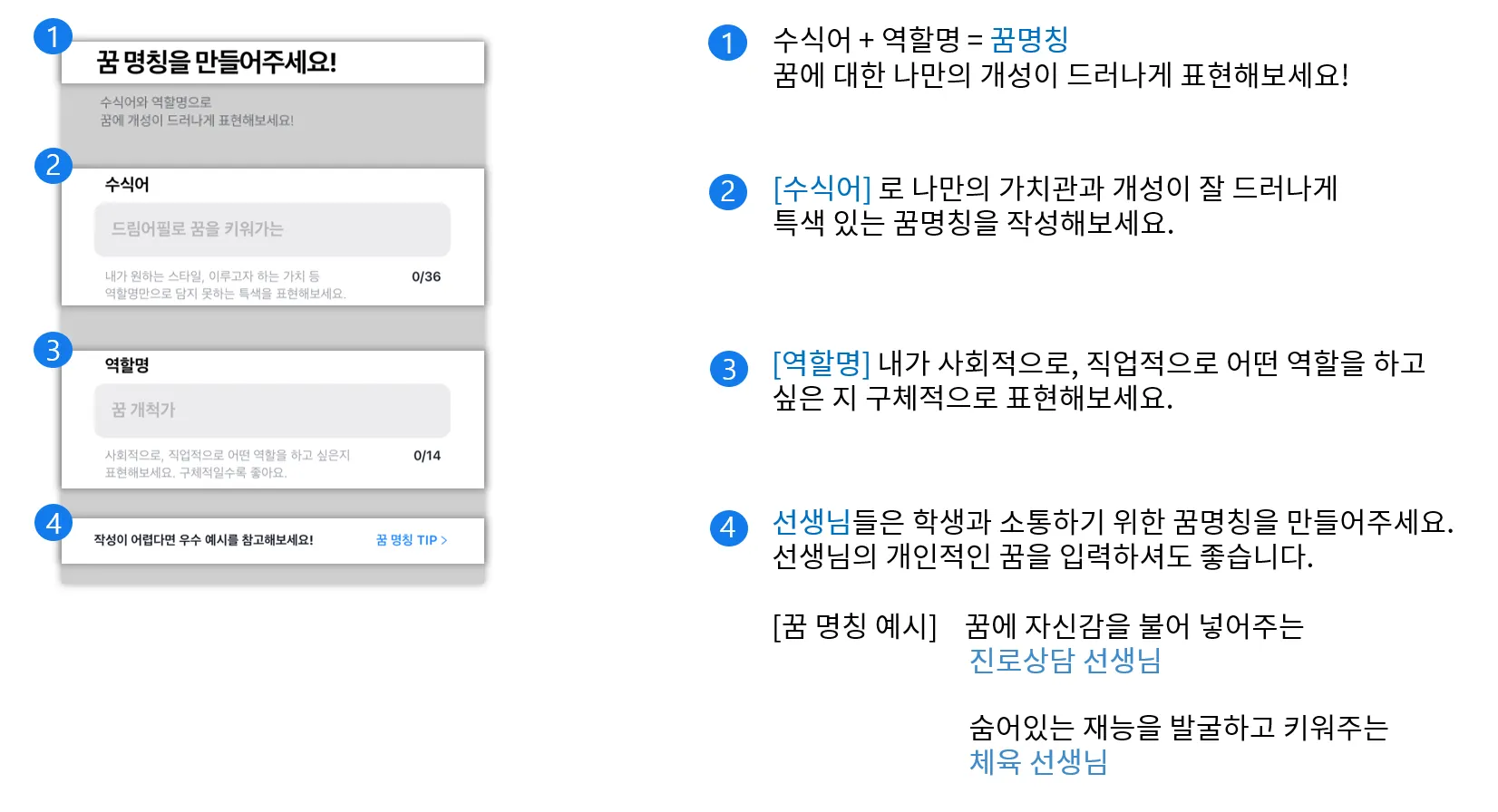 기본 꿈명칭은 ‘드림어필로 꿈을 키워가는 꿈 개척가’ 입니다.